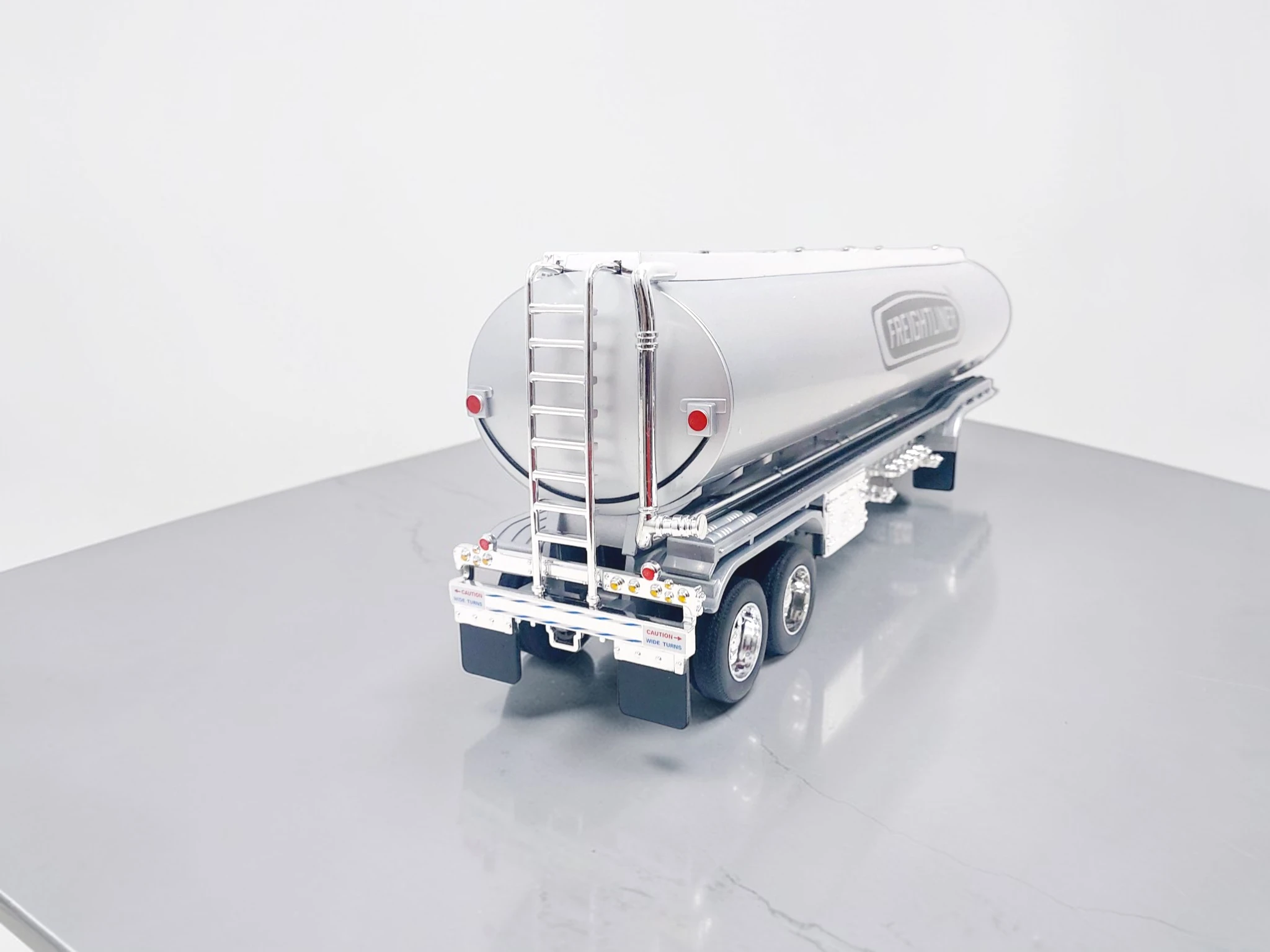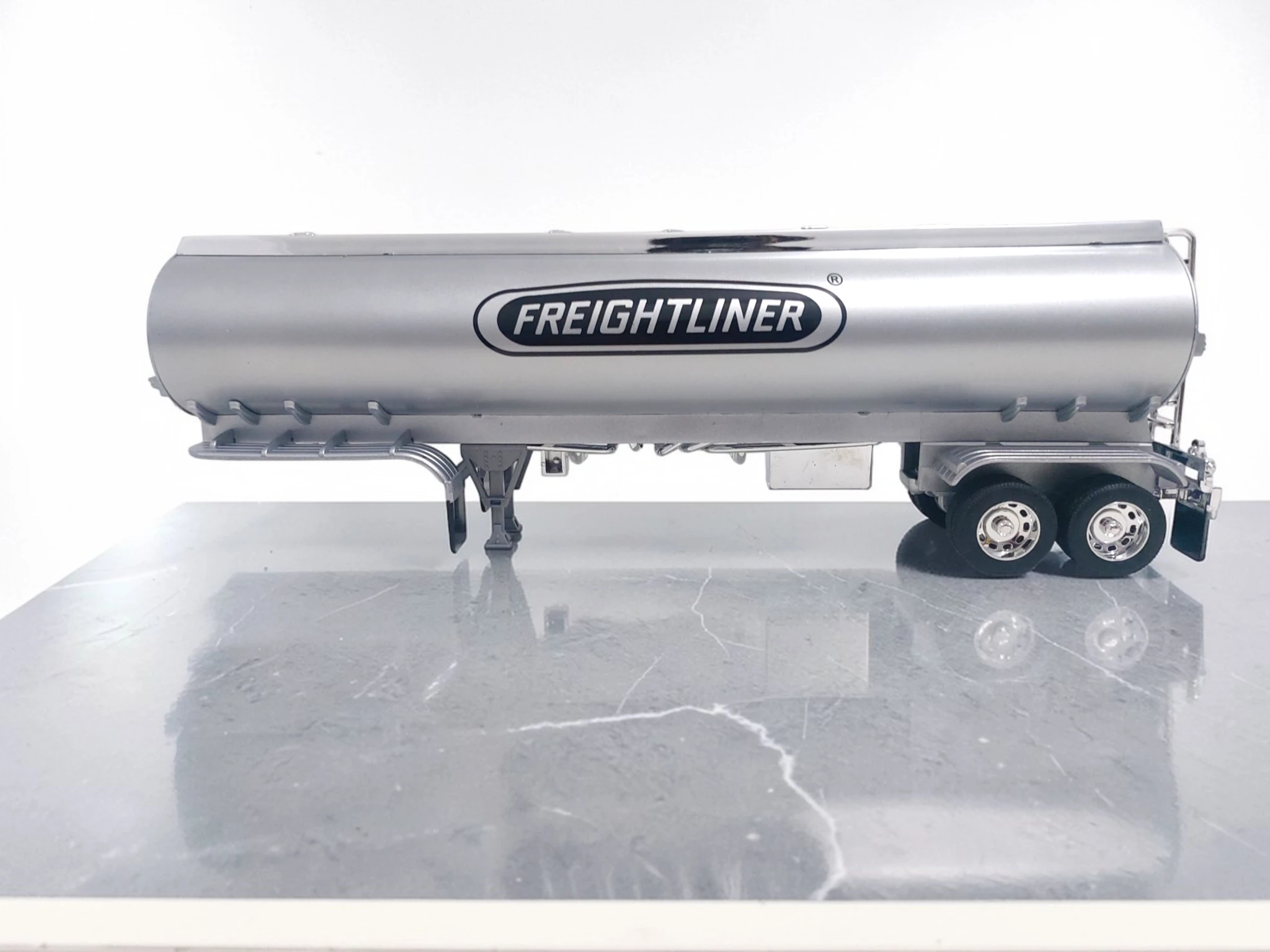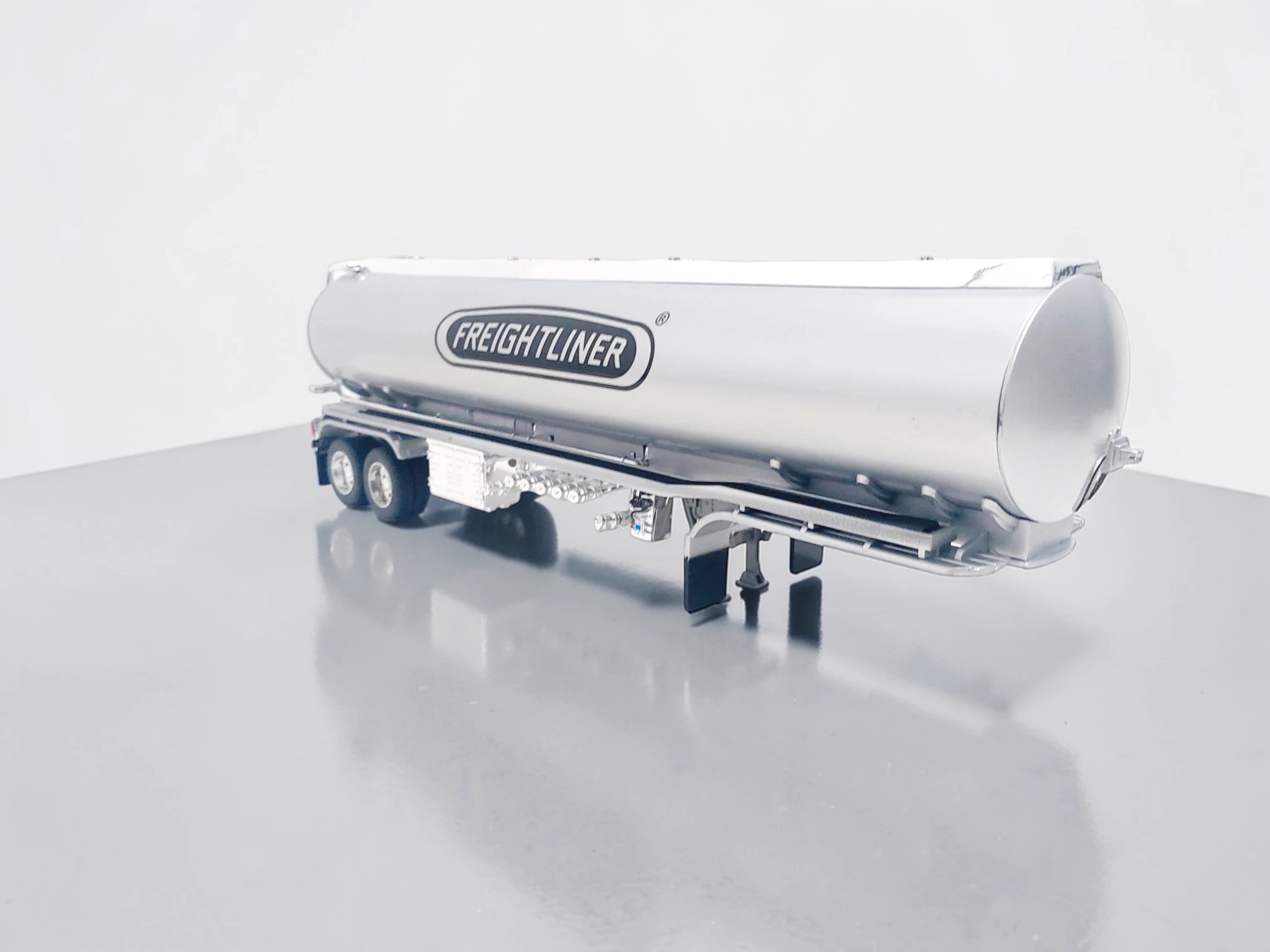 Este semirremolque Freightliner escala 1:32 destaca por su nivel de detalle y compatibilidad con tractocamiones de la misma escala.