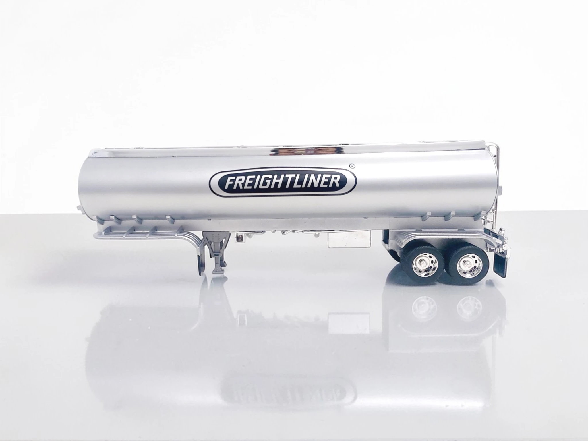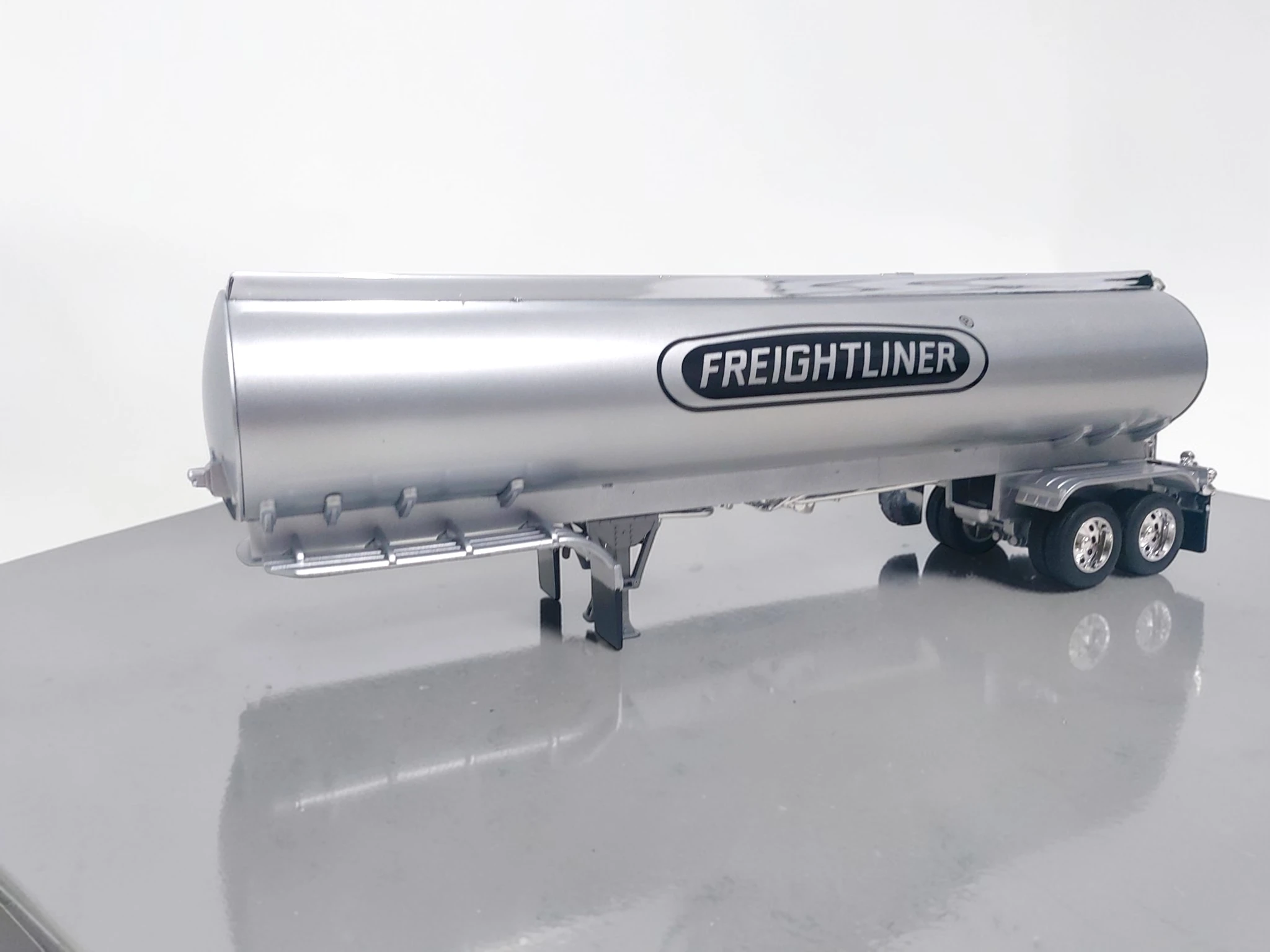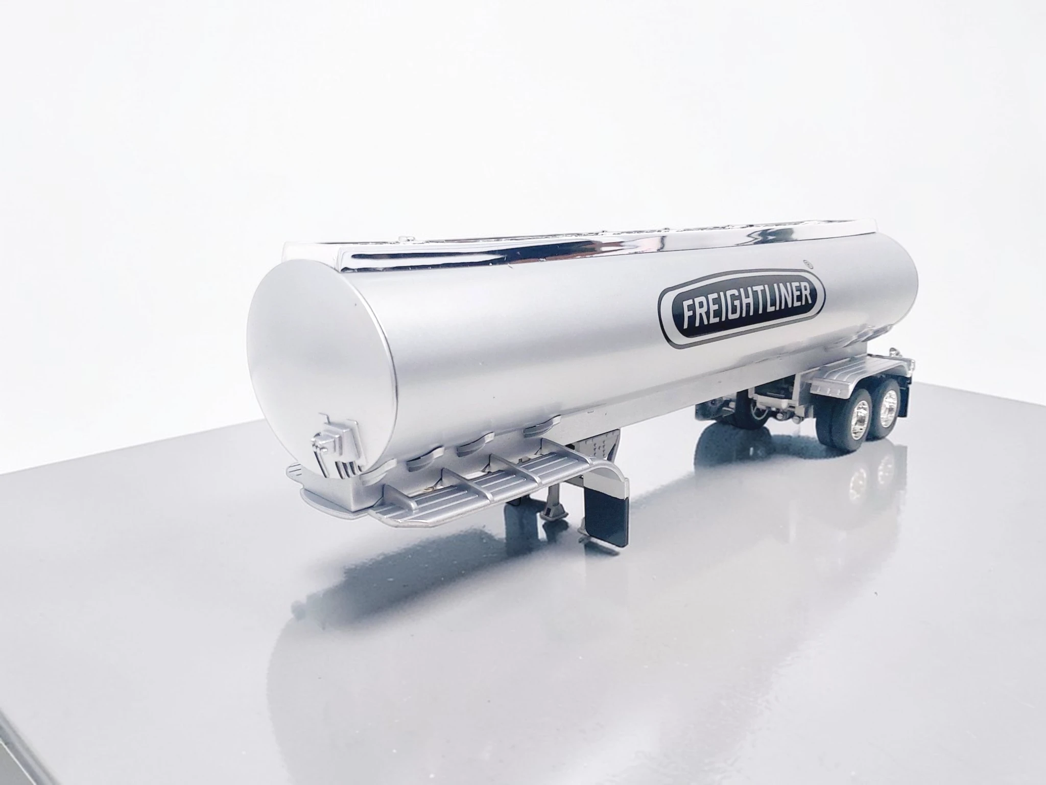 Este semirremolque Freightliner escala 1:32 destaca por su nivel de detalle y compatibilidad con tractocamiones de la misma escala.